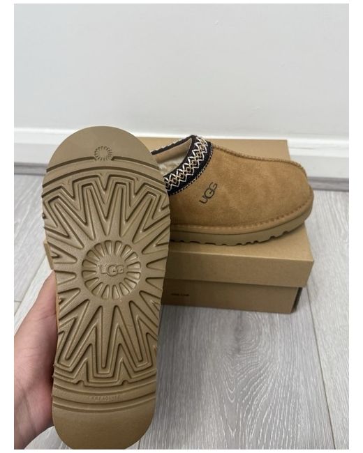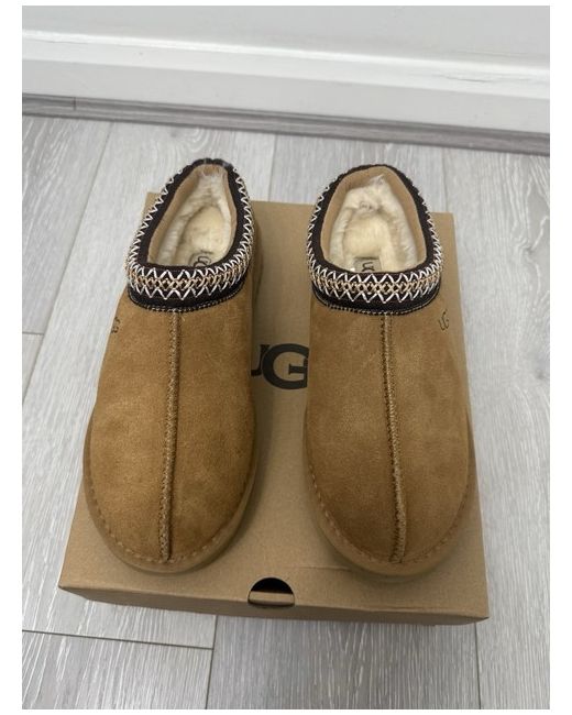 The UGG Tasman II is a comfortable and stylish slip-on slipper, perfect for casual occasions during the winter season. With a round toe shape and low heel height, this brown suede slipper is adorned with the UGG Australia logo as a subtle accent. The rubber outsole provides durability and grip, while the standard shoe width ensures a comfortable fit. Made with quality materials and featuring the signature UGG Classic product line, this UGG Tasman II is a must-have for women looking for both style and comfort in their footwear. BRAND NEW SIZE6