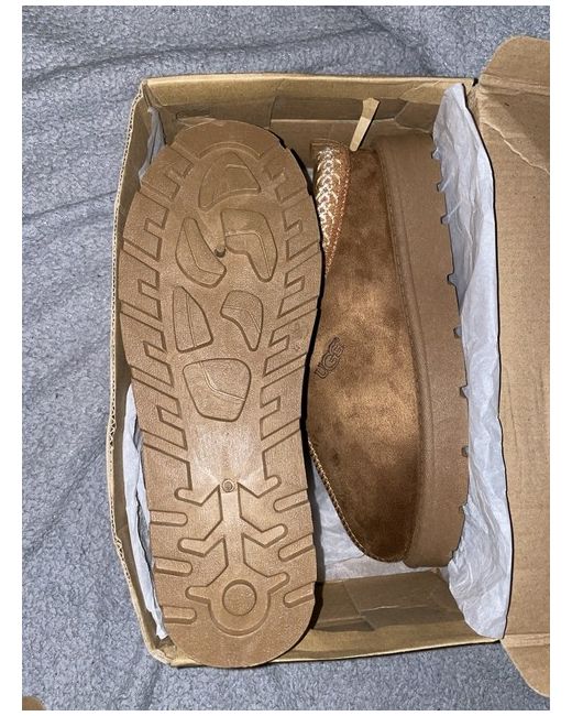 This Chestnut UGG slipper is a stylish and comfortable option for women in UK size 6. Featuring a slip-on design, round toe shape, and low heel height, these slippers are perfect for casual occasions in the winter season. The suede upper material, along with the logo accents, adds a touch of luxury to the UGG Australia brand. With a standard shoe width and comfortable features, these slippers are a great addition to any woman's wardrobe for adding a touch of warmth and style to their everyday wear.