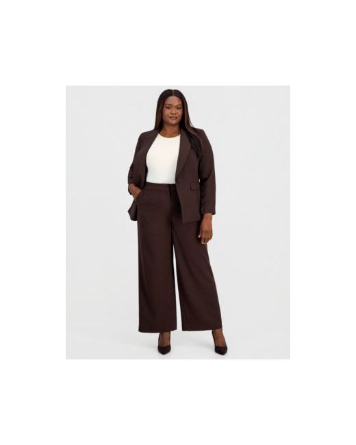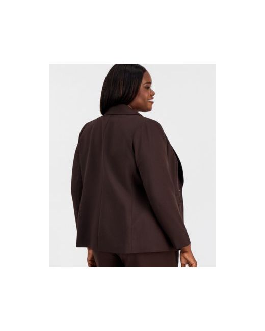 Perfectly suited for your polished styles, this plus size blazer from Tahari Asl features a single button closure and shoulder pads for structure.