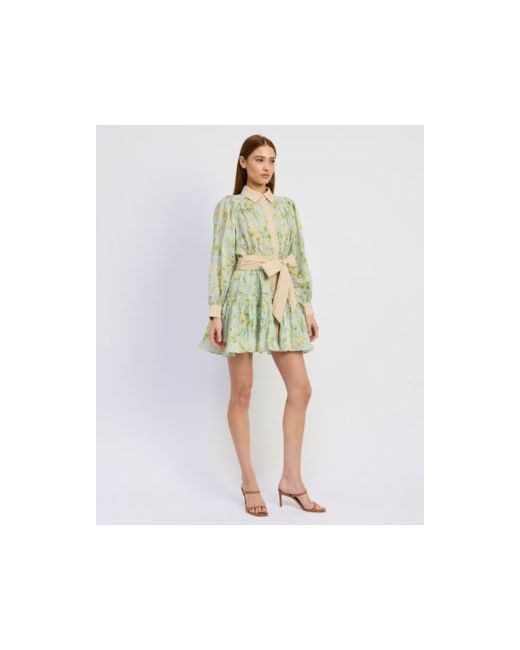 A front tie closure and collared neckline bring refined charm to this En Saison fit-and-flare dress. Long sleeves and button details offer timeless, polished styling.