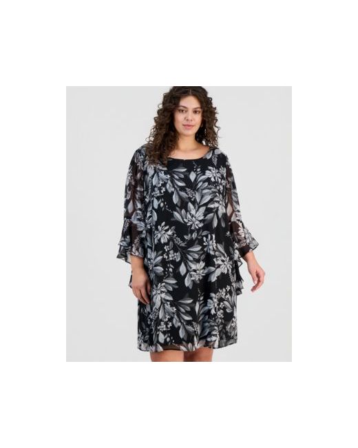 Breezy and oh so flattering, this plus size chiffon dress from Connected is framed by chic ruffled bell sleeves and finished with charming florals.
