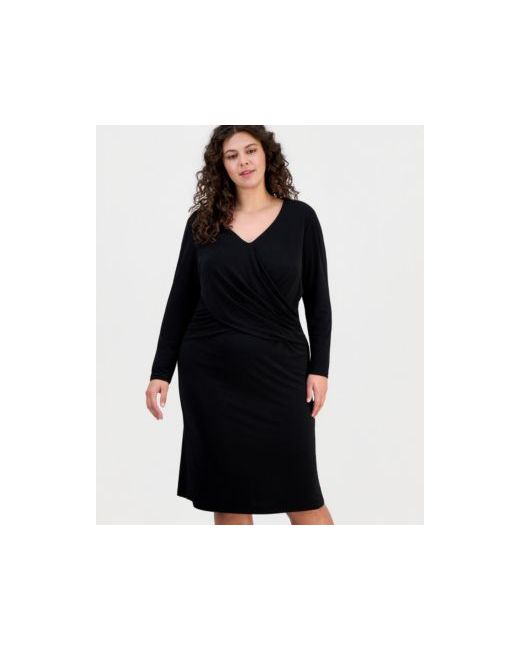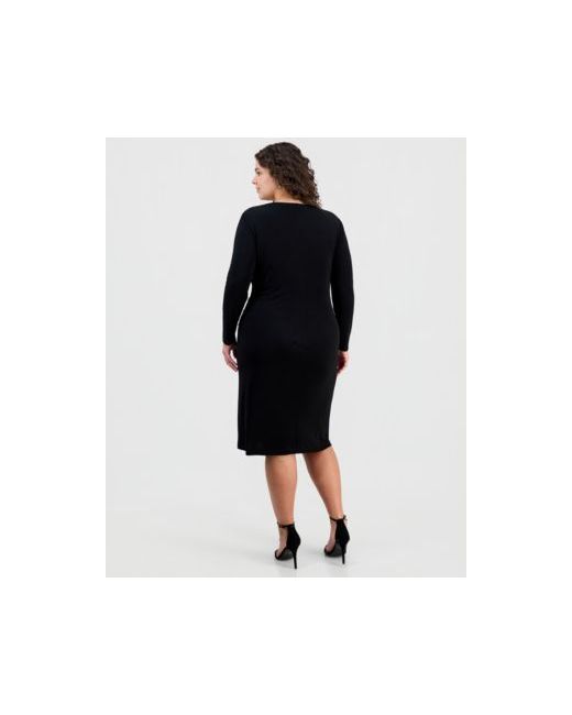 Accentuate your curves beautifully in this figure-flattering plus size drape front sheath dress from Connected.