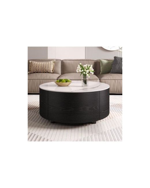 Elevate your living space with our Modern Round Movable Coffee Table, featuring a stunning sintered stone top with a marble pattern. This stylish table, equipped with two spacious drawers and smooth-rolling casters, offers both functionality and elegance. Its compact design makes it an ideal choice for smaller rooms while providing ample storage without compromising style.