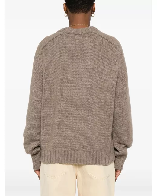 taupe brown ribbed cuffs and hem crew neck long sleeves