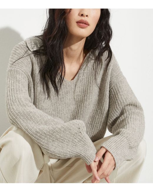 A wide, swept-open collar sets this max & Co. sweater apart, turning a classic rib-knit into something relaxed yet striking. Spun for softness and warmth, the oversized fit drapes with that structural fluidity the brand has championed since its 1986 debut under the Max Mara Group.