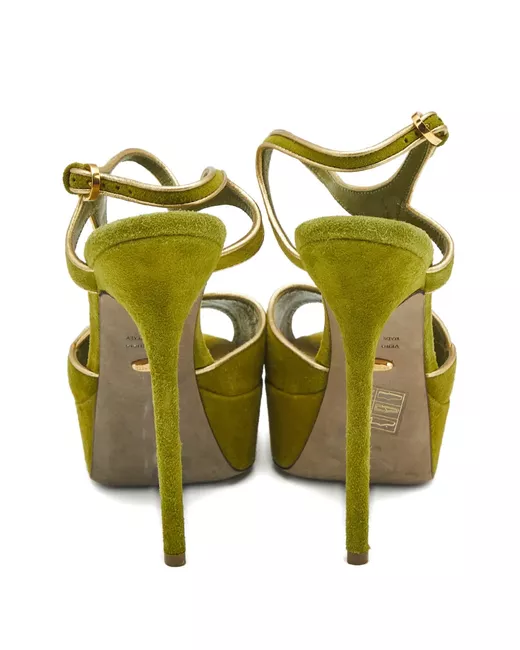 Green suede platform sandals