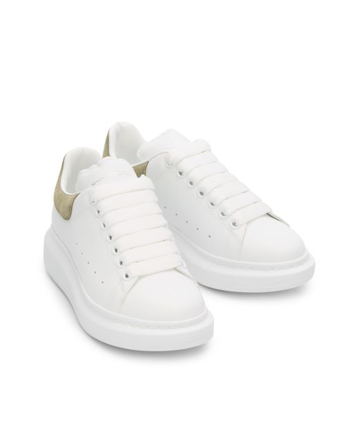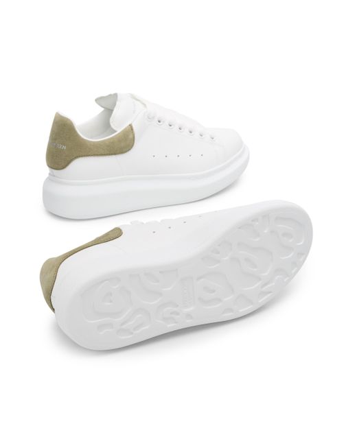 Crafted of leather, the Oversized sneakers from McQueen feature an exaggerated silhouette with an embellished heel tab. Round toe Lace-up style Leather upper Leather lining Made in Italy ABOUT THE BRAND Visionary designer Lee Alexander McQueen launched his brand in 1992, which quickly became synonymous with cutting-edge, avant-garde design. Creative Director Seán McGirr has continued the designer's legacy, bringing precision craftsmanship and a feminine vision to the label's signature edge. Women's Shoes - Alexander Mcqueen Shoes > Mcqueen > Saks Fifth Avenue. McQueen. Color: White Olive Green. Size: 7.