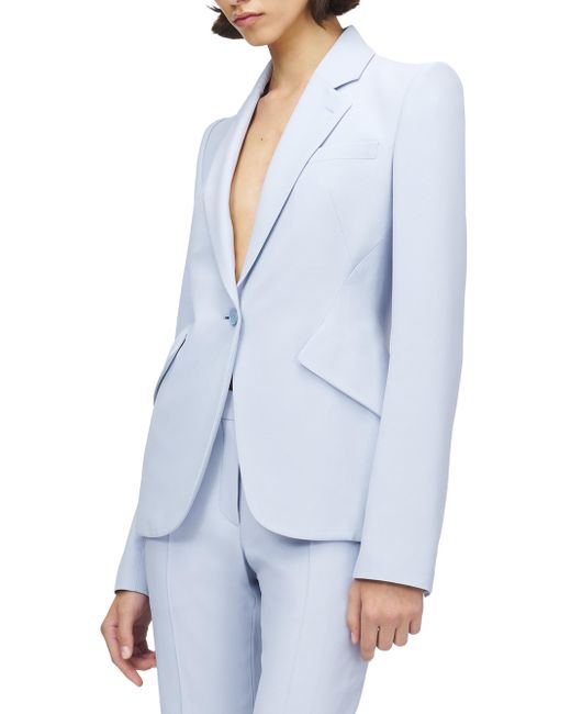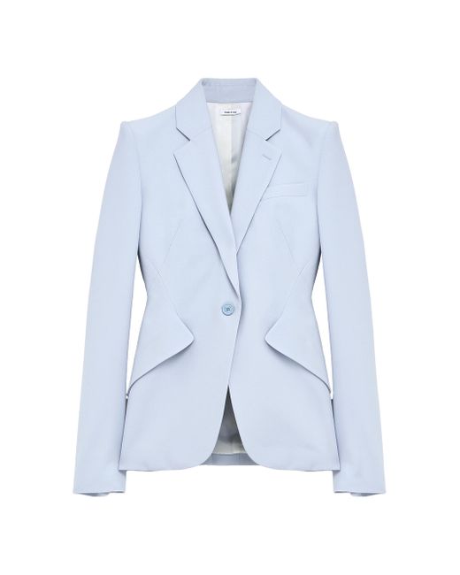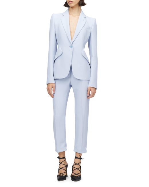 Crafted of luxe Italian leaf crepe, McQueen's contoured one-button blazer wraps the waist for a tailored fit. This piece includes notch lapels, a dual-vented back, and long sleeves with kissing-button cuffs. Notch lapels Long sleeves, button cuffs Vented back Button-front closure 52% viscose/48% acetate Lining: 100% cupro Dry clean Made in Italy SIZE & FIT Model measurements: 5'10" tall Model is wearing a US size 4 ABOUT THE BRAND Visionary designer Lee Alexander McQueen launched his brand in 1992, which quickly became synonymous with cutting-edge, avant-garde design. Creative Director Seán McGirr has continued the designer's legacy, bringing precision craftsmanship and a feminine vision to the label's signature edge. Advanced European - Alexander Mcqueen > Mcqueen > Saks Fifth Avenue. McQueen. Color: Ice Blue. Size: 0.