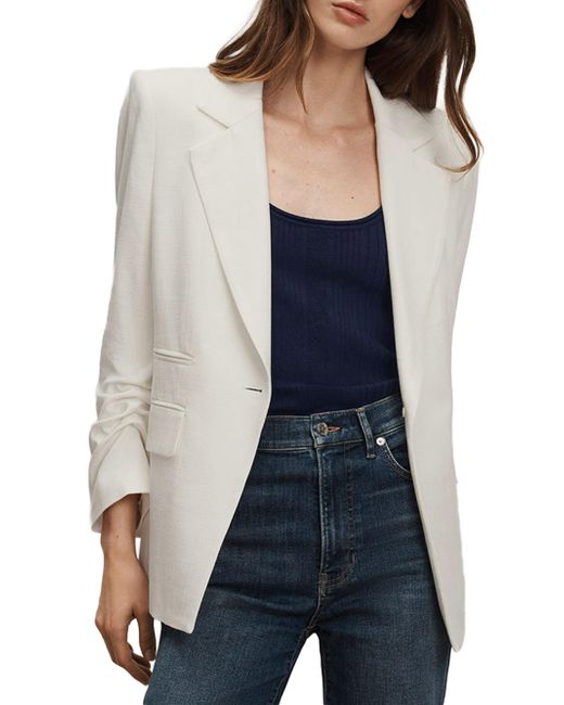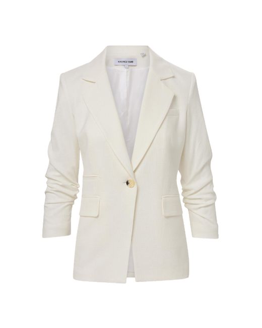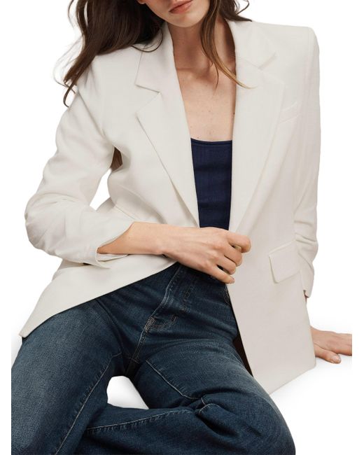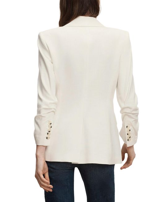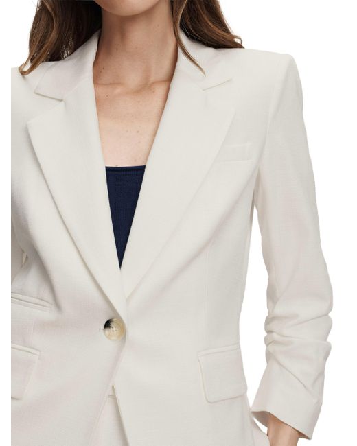 The Battista Dickey Jacket from Veronica Beard is designed with notch lapels, ruched three-quarter-length sleeves, and side flap pockets for a structured look. The label's iconic Dickey style is designed to be worn alone or layered over a detachable zip-on Dickey. Compatible with Veronica Beard Dickey inserts (sold separately). Notch lapels Ruched three-quarter-length sleeves Chest welt pocket Side flap and ticket pockets Button-front closure 98% viscose/2% elastane Dry clean Made in USA SIZE & FIT About 28" from shoulder to hem Model measurements: 5'10" tall Model is wearing a US size 4. Contemporary Sportswear - Veronica Beard > Veronica Beard > Saks Fifth Avenue. Veronica Beard. Color: Dove. Size: 00.