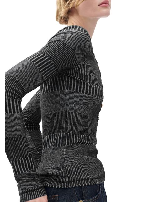 This rag & bone rib-knit shirt features a Henley-inspired silhouette, including a crewneck, long sleeves, and a button-front closure. Crewneck Long sleeves Button-front closure 62% rayon/35% polyester/3% spandex Machine wash Imported SIZE & FIT About 23.25" from shoulder to hem Model measurements: 5'10" tall Model is wearing a US size Small. Contemporary Sportswear - Denim And Bottoms > Rag & Bone > Saks Fifth Avenue. rag & bone. Color: Black White Multi. Size: XS.