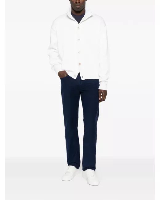 white button fastening ribbed knit high neck long sleeves ribbed hem