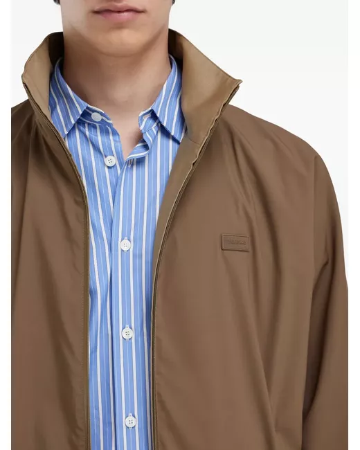 beige reversible high collar two-way zipper elasticated trims logo detail