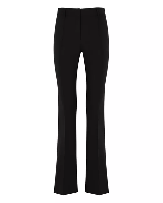 Black Hibiscus trousers from Veronica Beard featuring a concealed front fastening, a waistband with belt loops, piped seams to the front, a flared style and a long length.