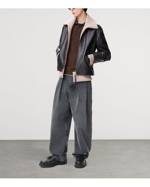 Cut to a relaxed fit and trimmed with stretchy ribbed wool in a layered look, this leather jacket from loewe embodies the label's laid-back, irreverent aesthetic to a tee. The buttons on the ribbed hem provide a classic touch to the more contemporary leather design, while flap pockets hint at tailoring influences.