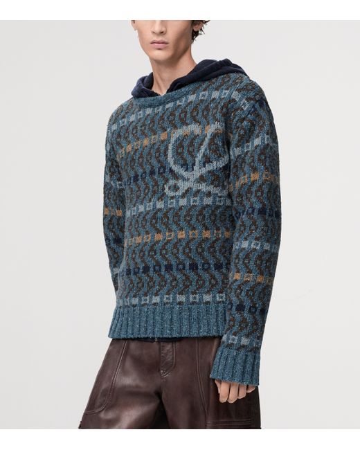 Crafted from a medium-weight wool blend for softness and warmth, this sweater from loewe is a comfortable choice when there's a chill in the air. Beyond how it feels, it provides a striking visual statement thanks to its intarsia geometric pattern - the large ‘L' on the chest completes the look, leaving the Spanish label's distinctive mark.