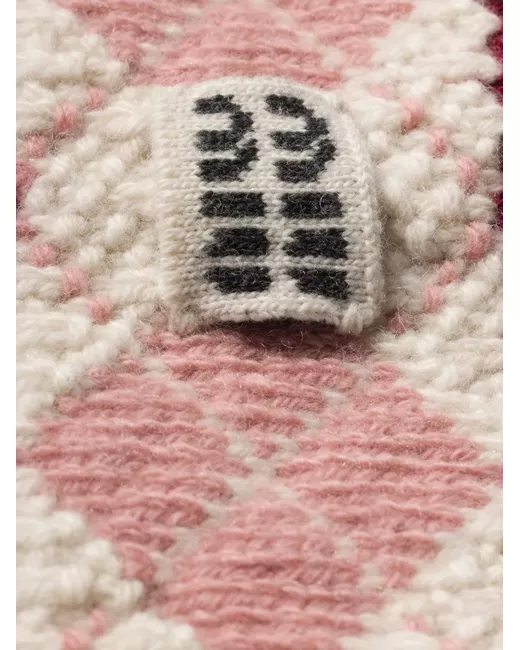 beige argyle pattern logo patch