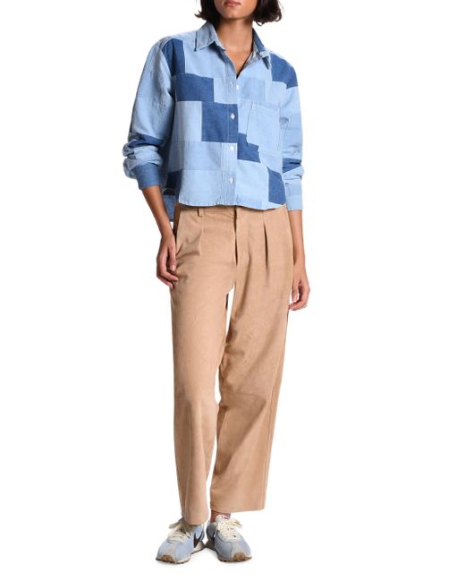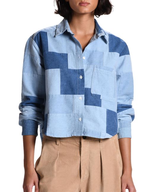 A patchwork composition of tonal denim gives this CISSA button-front shirt a distinctive geometric look, balanced by a classic collar and an easy silhouette. Spread collar Shoulder yoke Long sleeves; button cuffs Button-front placket Single chest patch pocket High-low shirttail hem Cotton Dry clean Made in USA from imported materials SIZE & FIT About 20" from shoulder to hem Cropped length Model measurements: 5'10" tall Model is wearing a US size Small. Modern Collections - Modern Trend > Cissa > Saks Fifth Avenue. Cissa. Color: Denim Patch. Size: XS.