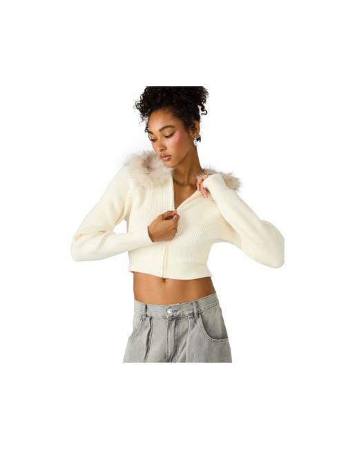 Cozy with a collared design and faux fur trim, this sweater jacket from Steve Madden features a zip-front closure. The long sleeves and unlined construction offer a stylish and warm layer for cold weather.