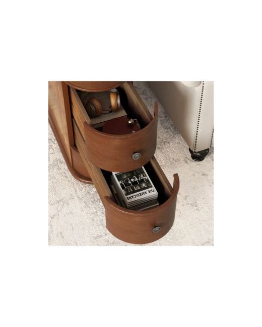 The end table feature with charge station included 2 Ac outlets, 2 Usb ports, 2 drawers for storage, the table frame used Rubber wood, others used Mdf. The side table arrives fully assembled, saving you time.