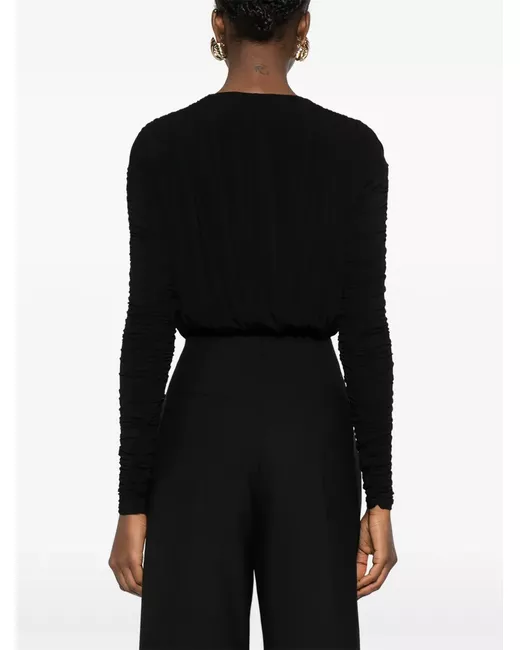 black V-neck ruched detailing