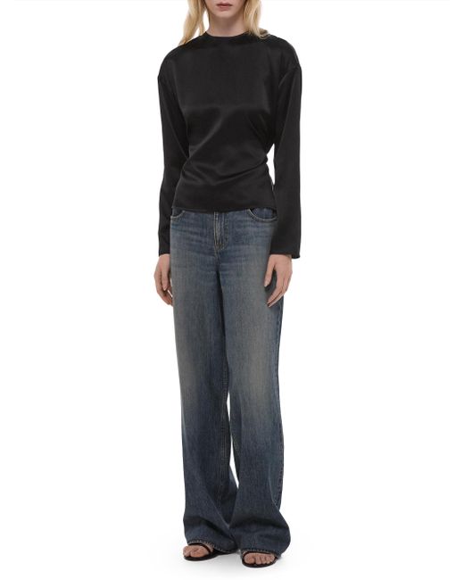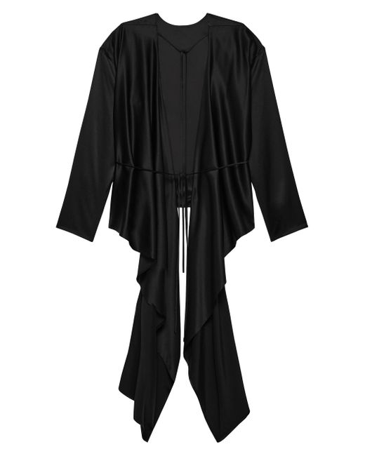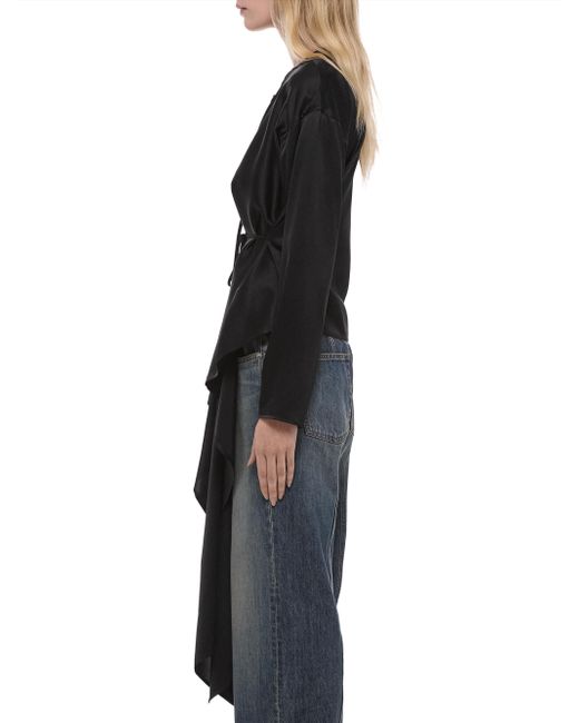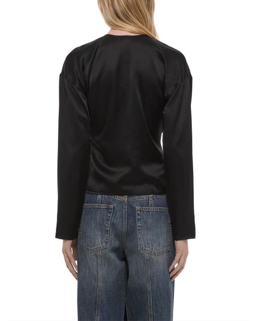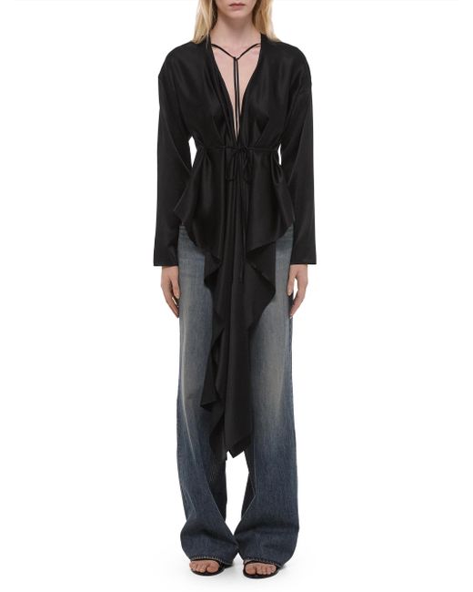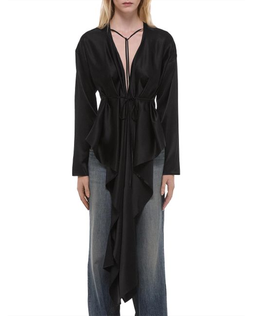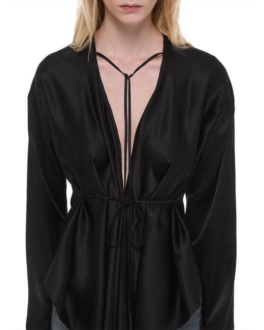 The top from Helmut Lang features a relaxed fit and long sleeves, crafted of silk with a scarf drape detail. Tieneck Long sleeves Self-tie belt 100% silk Dry clean Imported SIZE & FIT About 33.5" from shoulder to hem Model measurements: 5'10" tall Model is wearing a US size Small. Contemporary Sportswear - Helmut Lang > Helmut Lang > Saks Fifth Avenue. Helmut Lang. Color: Black. Size: XS.