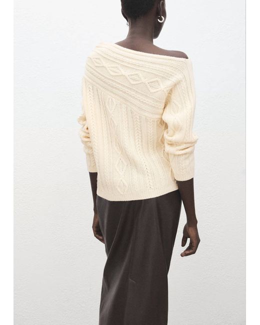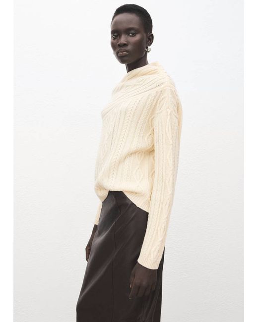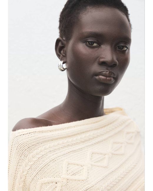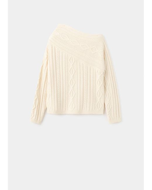Wool mix fabric, Chunky knit fabric, Braided design, Straight design, Asymmetrical neckline, Long sleeve, No Fastening