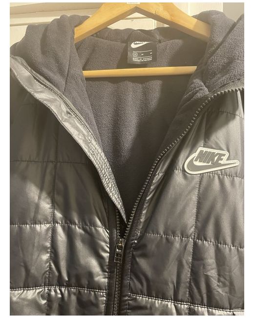 The Nike Men's Windbreaker Jacket in size Medium is a stylish and practical choice for casual occasions during the spring season. Made with polyester outer shell and fleece lining, this jacket provides warmth and comfort. Featuring a zip closure, regular fit, and black colour, it is suitable for walking activities. Easy to care for with machine washable garment care, this windbreaker jacket by Nike is a versatile addition to any man's wardrobe.