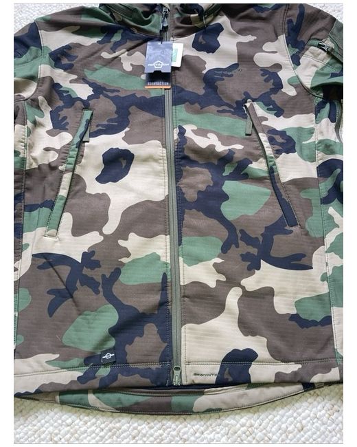 The Pentagon Artaxes Men's Softshell Jacket in XL size is a military-inspired outdoor jacket in woodland camo. Made from a durable blend of polyester and nylon, this jacket features a breathable softshell fabric, thermal lining, and multiple pockets for convenience. The camouflage pattern and military jacket style make it a versatile option for outdoor activities, perfect for the modern man looking for both style and functionality in his outerwear.