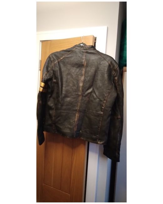 Leather jacket sizes m.brown with gold rubbing. brand new postage including in the price.