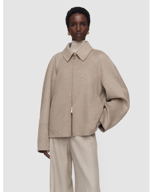 The Cooksey Double Face Cashmere Jacket is a relaxed fit, zipped jacket, crafted from a luxurious blend of wool and cashmere. This modern silhouette features soft, sculptural shaping across the back and sleeves. Elegantly finished with a double-ended zip and a detachable knitted collar for versatile styling.