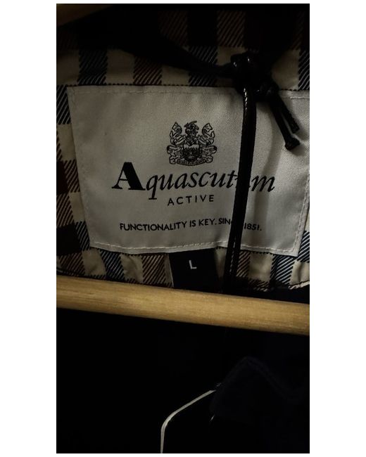 Aquascutum lightweight jacket, very stylish, BNWT. Unfortunately, too small on me. Navy nylon stretch fabric. Front zip up fastening. Short stand collar with double button fastening. Front press stud pockets. Small Aquascutum check tag on the seam. Ribbed sleeve cuffs and hem. Slim fit. 94% nylon, 6% spandex.