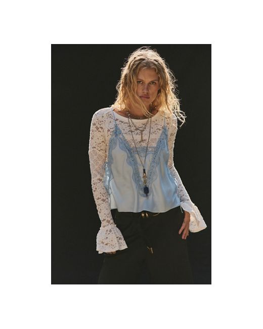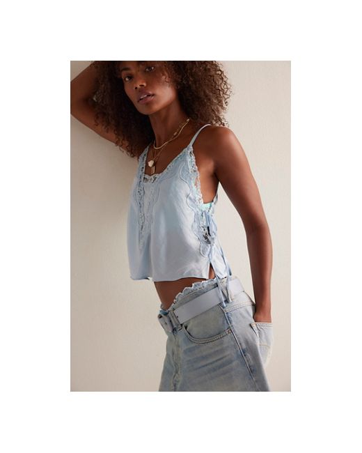 Add a lovely layer to your look with this so sweet cami, adorned with sheer lace trim throughout. * Adjustable straps * Ribbon ties on the sides * Split hems on the sides * Subtle V at the back Someone Like You Cami by Intimately at Free People in Skyride Combo, Size: XS