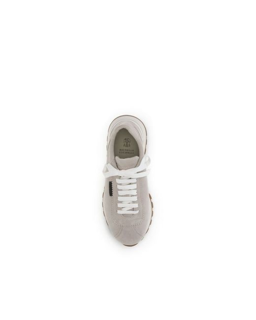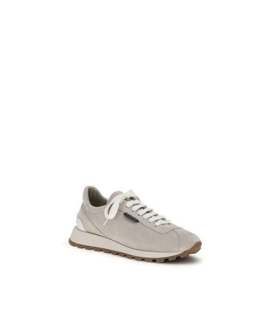 The leather Sneakers by Brunello Cucinelli combine elegance and comfort. The suede design lends a refined touch, while the front lace-up closure ensures an adjustable fit. The round toe ensures comfort, while the knurled platform sole adds a modern touch and extra grip. The shiny bead detail on the front enhances the brand’s distinctive aesthetic. Completing the design is the logo-embossed press stud insole, a symbol of exclusivity and craftsmanship. Season: SS26 Composition: SOLE 100% Rubber UPPER 100% Calf Leather Bos Taurus