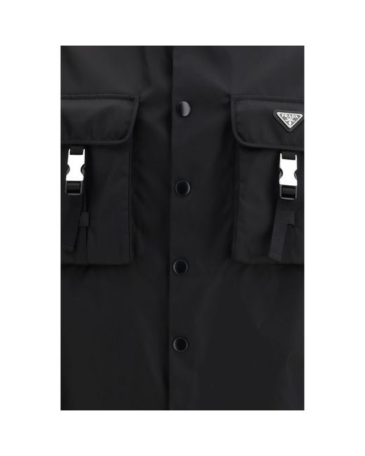 The Re-Nylon Shirt by Prada, defined by an oversized fit and a large patch pocket with strap, is crafted from Re-Nylon: a regenerated nylon yarn (ECONYL®) produced from recycled and purified plastic waste recovered from the ocean, fishing nets, and textile fiber scraps. The design features a classic collar, straight hem, snap cuffs, and a front snap closure, while the iconic enameled metal triangle logo accents the piece with Prada’s unmistakable aesthetic. Season: SS26 Fit: Regular Composition: 100% Recycled Polyamide