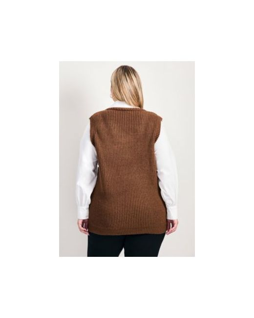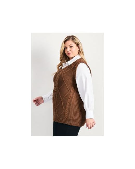 A versatile layered look in one easy to wear garment. Vest is in a soft cozy cable knit with cotton shirting sleeves and collar. Designed in a longer length for comfort and coverage Fabric: 77% Acrylic 9 % Nylon 6% Polyester 8% Wool. Lining: 100% Cotton Care: Machine Wash Key Features Include: Length: 30". Duet. Plus Sizes 14-32Avenue. Imported