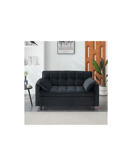 Black 55 Inch Pull Out Sleeper Loveseat Sofa Bed Convertible Couch with Pillows and Side Storage Pockets