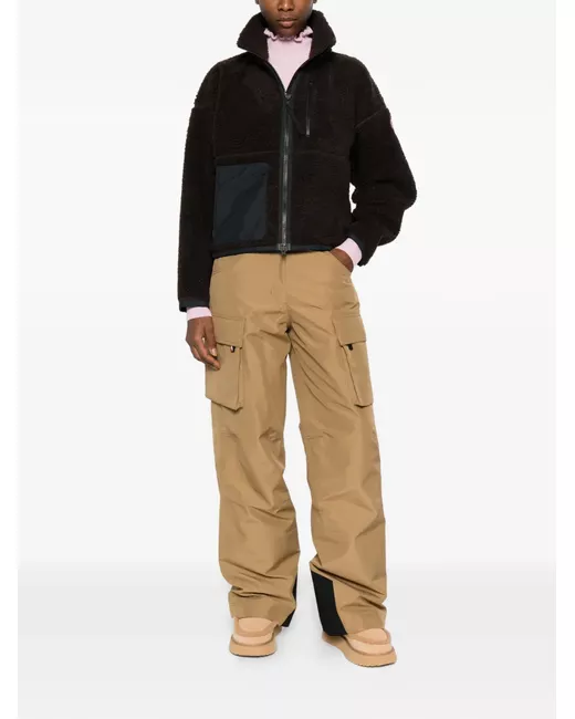 brown zip fastening patch pocket logo patch zipped pockets long sleeves