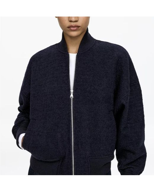 Arket Women's Boiled Wool Jacket Size S , Dark Blue Long Sleeve
