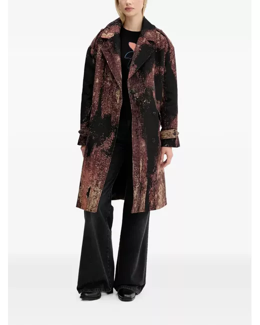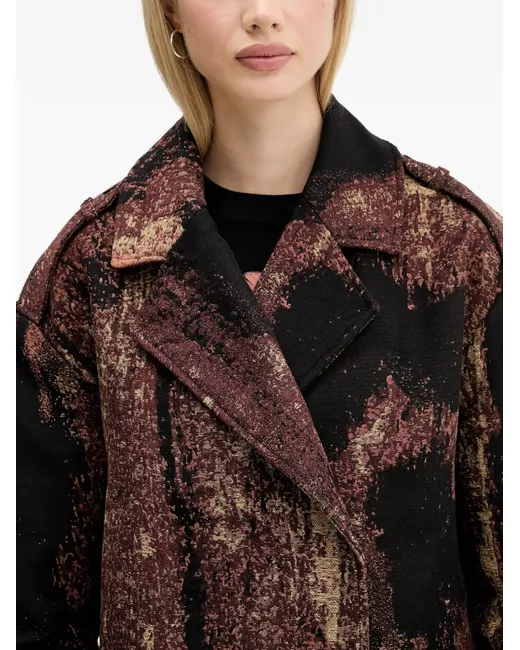 Women's Black abstract-pattern double-breasted coat