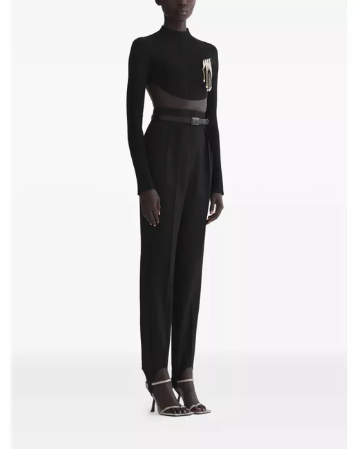 black embellishment round neck long sleeves cropped cutout back