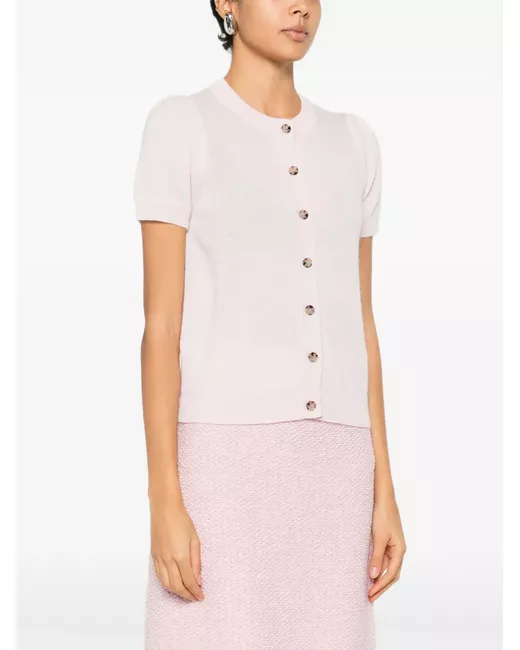 pink button fastening short-sleeve round neck ribbed hem ribbed cuffs