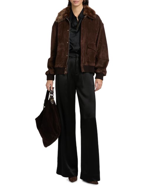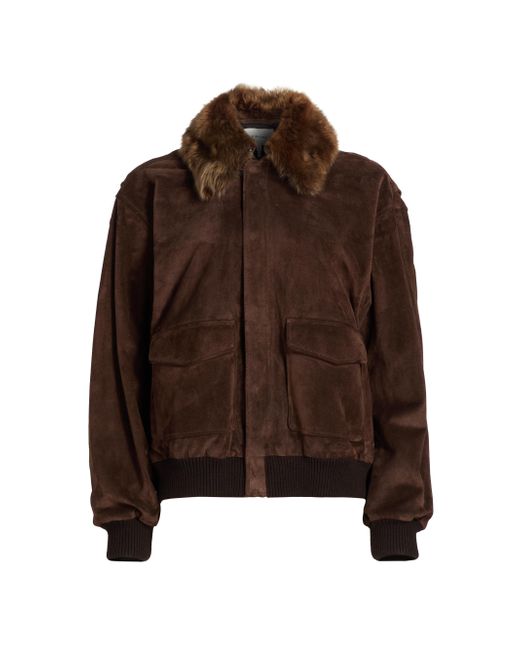 This Frame jacket is crafted of leather and flaunts an oversized silhouette. This piece is styled with a shearling spread collar and rib-knit hem. Spread collar Long sleeves, rib-knit cuffs Side flap and slip pockets Rib-knit hem Front zip closure with storm placket 100% leather Collar: 100% shearling Fur type: dyed shearling Fur origin: Italy Dry clean Imported SIZE & FIT About 28" from shoulder to hem Model measurements: 5'10" tall Model is wearing a US size Small ABOUT THE BRAND In 2012, Erik Torstensson and Jens Grede combined their California-modern point of view with a European sensibility to establish Frame. The ready-to-wear label, first known for its denim, has expanded to leather, cashmere and tailoring-all with an effortless ethos at the core. Focusing on quality fabrics and foundational dressing, the brand delivers chic everyday staples favored by Hollywood starlets and beyond. Contemporary Sportswear - Denim And Bottoms > Frame > Saks Fifth Avenue. Frame. Color: Americano. Size: XS.