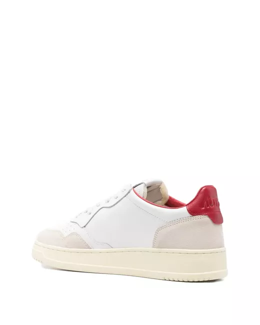 white red heel counter lace-up fastening perforated toe box panelled design flat sole