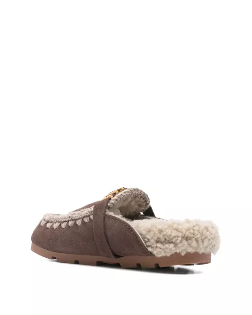 brown shearling lining logo appliqué flat sole slip-on style