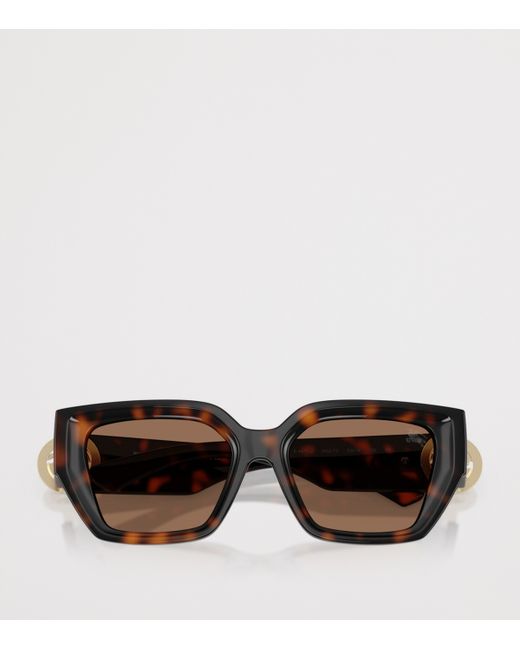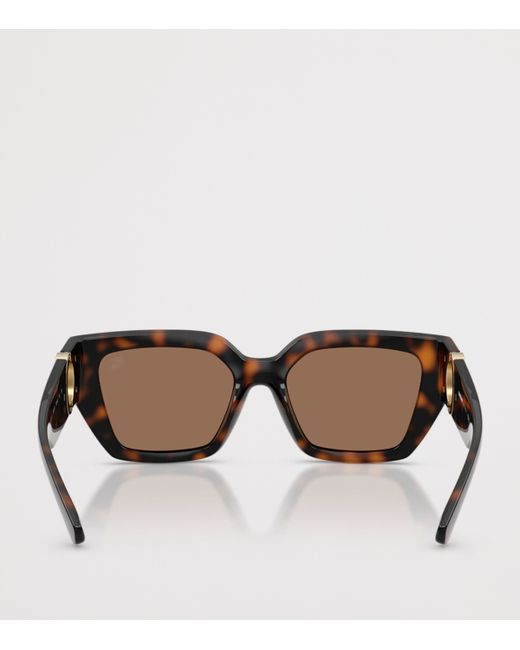 These Burberry sunglasses showcase the brand's signature blend of heritage and contemporary design. Crafted in Italy, the injected frames feature solid colour lenses that provide 100% uv protection. The tortoiseshell, angular frames and Equestrian Knight Design hardware are a nod to Burberry's attention to detail, welcoming the brand's British elegance to every ensemble.