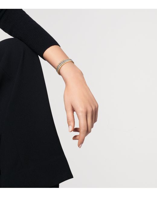 chanel's quilted motif has been an emblem of the Maison since 1955, when history was made with the introduction of the 2. 55 bag, named after its own birth date. It inspires many of its jewellery collections too, such as the Coco Crush, with the matelassé texture brought to life on this bangle in 18-karat white gold.