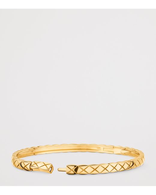 chanel's quilted motif has been an emblem of the Maison since 1955, when history was made with the introduction of the 2. 55 bag, named after its own birth date. It inspires many of its jewellery collections too, such as the Coco Crush, with the matelassé texture brought to life on this bangle in 18-karat yellow gold.