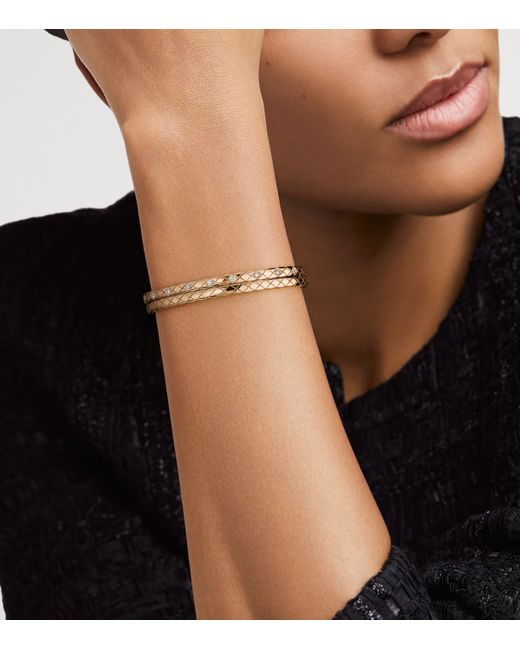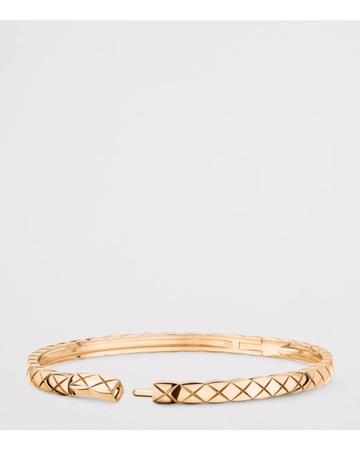 chanel's quilted motif has been an emblem of the Maison since 1955, when history was made with the introduction of the 2. 55 bag, named after its own birth date. It inspires many of its jewellery collections too, such as the Coco Crush, with the matelassé texture brought to life on this bangle in 18-karat beige gold.