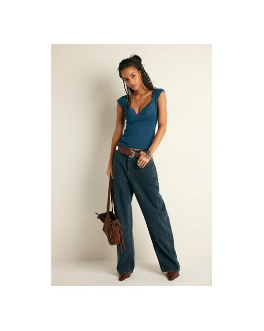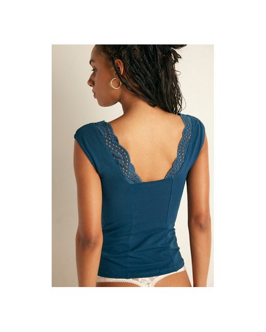Soft and subtly detailed, this tee from Intimately features a comfy knit fabrication with eyelet trim along the bust and sleeves, capped sleeves, and seam details along the front and back for a flattering silhouette. * Soft knit fabrication with stretch eyelet trim * Pull-on tee * Lined cups * Deep sweetheart neckline * Scoop back design Blush Hour Tee by Intimately at Free People in Deep Dive, Size: XS