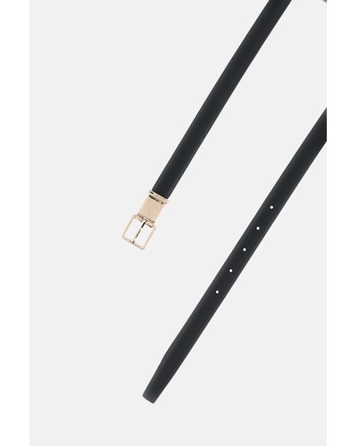 Elegant leather belt made in Italy with a gold-tone metal buckle. Color: black.